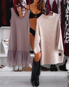 Put on this cozy and stylish outfit and let yourself be wrapped in warmth, softness, and confidence.
