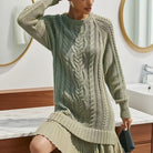 Gaëlle™ combines cozy knitwear with feminine sophistication. Crafted as a sweater dress with a flattering straight cut, it features a delicate pleated hem that adds a chic and playful touch to its timeless cable knit design. Ideal for cool days, this dress effortlessly transitions from a casual outfit to an elegant evening look. Pair it with tights and boots for a cozy look or heels for a more refined look.