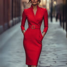 Hayden Lume | Refined Dress With Belt And Mandarin Collar